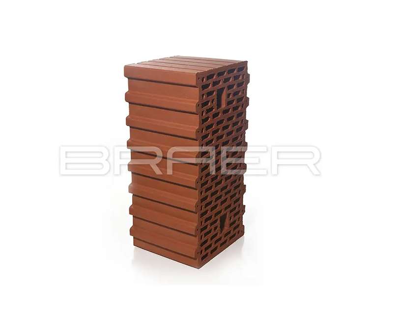 Отличные теплотехнические характеристики крупноформатных керамических блоков БРАЕР достигаются за счет высокого процента пустотности - (около 59%), поризованной структуры камня и наличия системы паз-гребень.