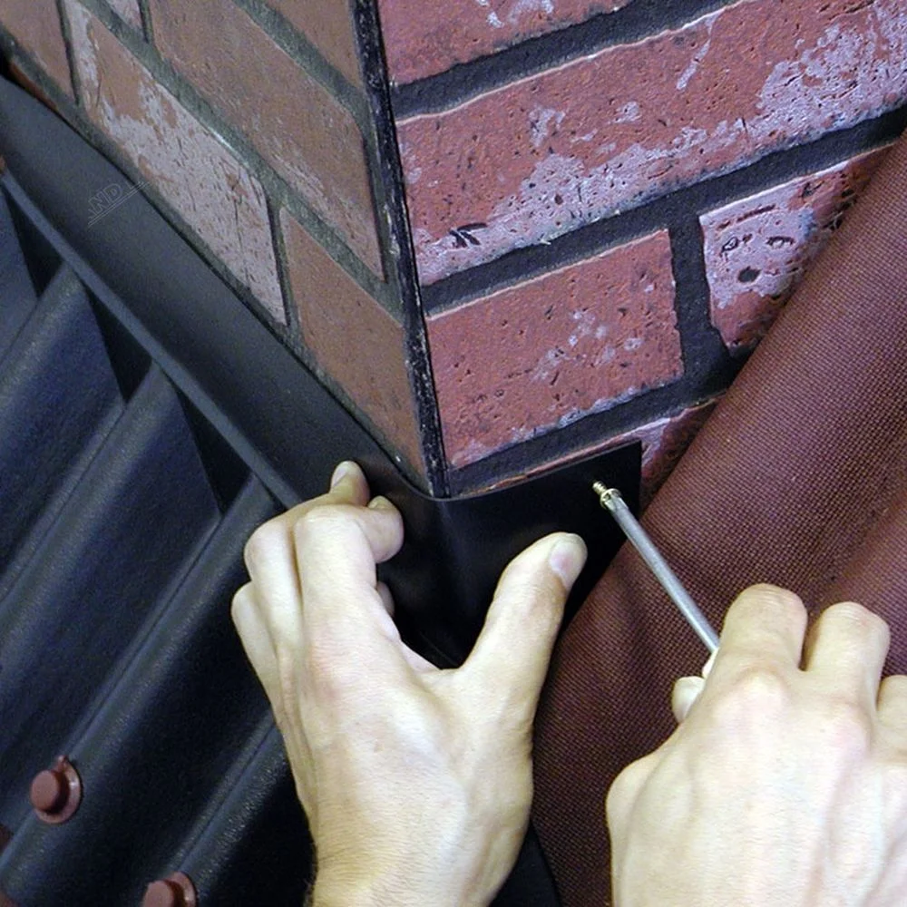 Использовать фартук Ондулин необходимо при монтаже печной трубы или торцевого примыкания кровли к стене.